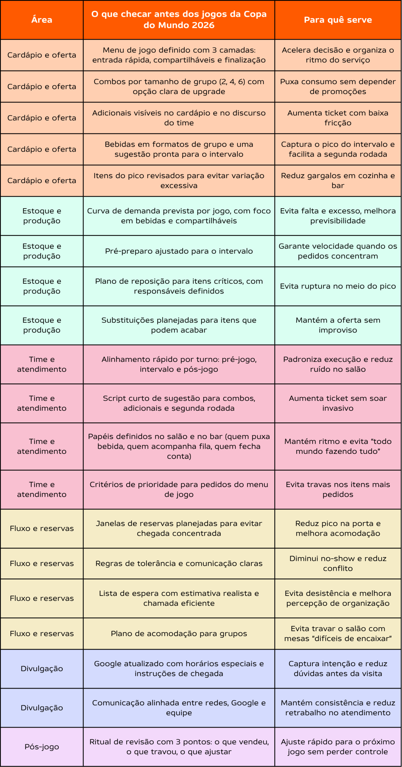 - Checklist final para o restaurante entrar em campo com segurança na Copa do Mundo 2026