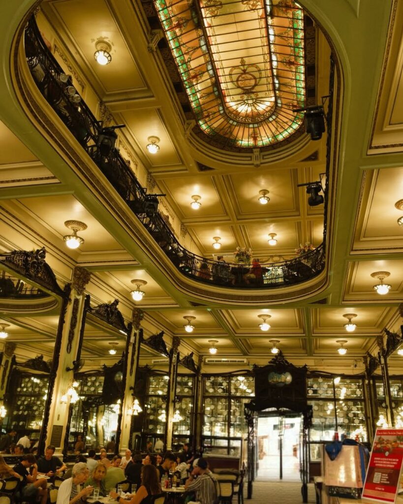 Exemplo: Confeitaria Colombo, Rio de Janeiro. Com vitrais, espelhos, lustres e arquitetura clássica, a Colombo é um patrimônio visual. Suas sobremesas e cafés também são fotogênicos, reforçando a identidade icônica do local.