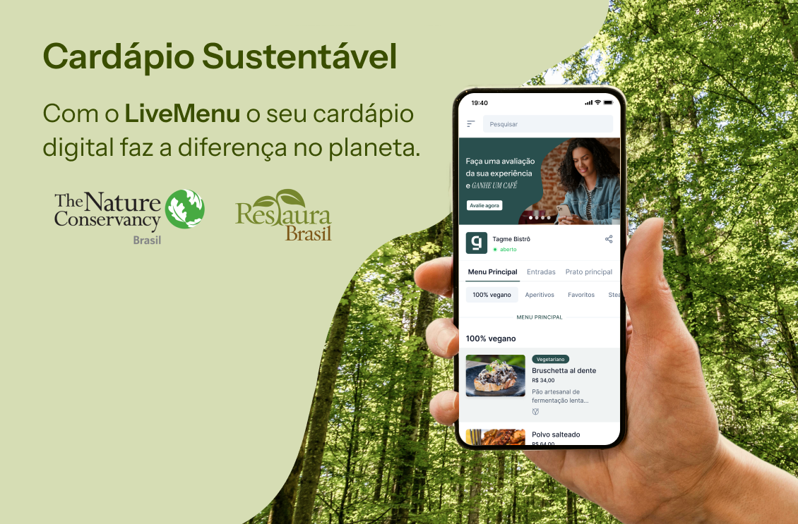 - Contribuição com iniciativas ambientais: apoiar ONGs sérias, como a The Nature Conservancy (TNC), é uma forma de ampliar o impacto positivo. Restaurantes podem integrar ações de doação direta ou incluir banners informativos no cardápio digital, conectando clientes à causa de forma transparente e relevante.